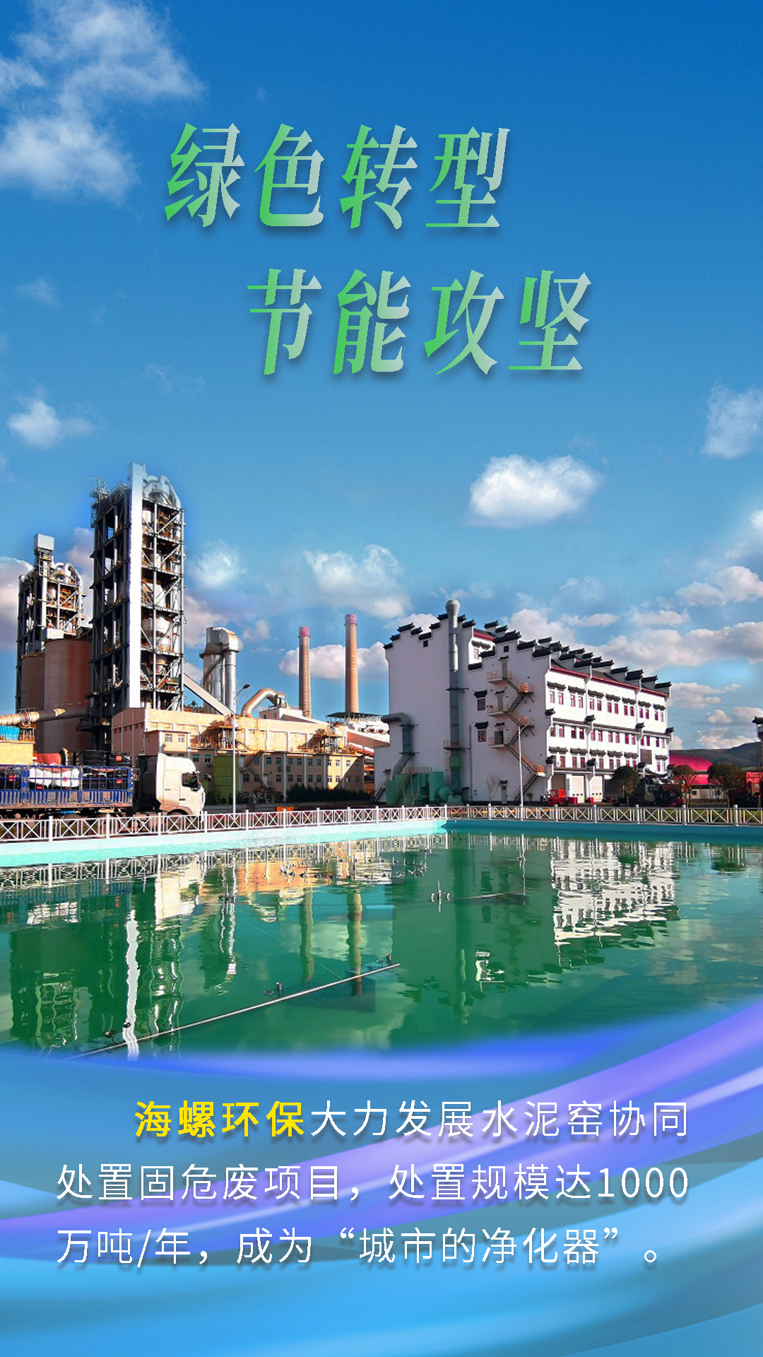 今天跟隨海報(bào)畫面鏡頭,一起來了解海螺水泥“綠色轉(zhuǎn)型,節(jié)能攻堅(jiān)”的故事。