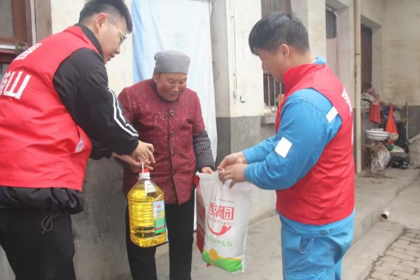 鳳凰山海螺暖心行動(dòng),組織志愿者們赴公司周邊村莊看望慰問老人,為他們送去米、油等生活物品。