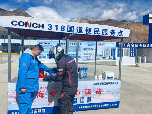 海螺建安依托承建的白瑪鎮(zhèn)珠巴村鄉(xiāng)村振興物資中轉(zhuǎn)站項(xiàng)目部,在318國(guó)道西藏八宿段建設(shè)了海螺愛心驛站,免費(fèi)向游客提供休憩、飲用水、吸氧、醫(yī)療急救用品、手機(jī)充電、如廁等暖心服務(wù)。