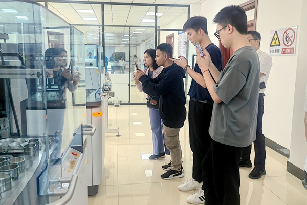 在智能化驗(yàn)室,學(xué)員們觀看了機(jī)器人取樣、自動(dòng)檢測(cè)等先進(jìn)設(shè)備自動(dòng)操作流程。當(dāng)了解到,相較于傳統(tǒng)化驗(yàn)需要2小時(shí),現(xiàn)在30分鐘就能完成全套質(zhì)量檢測(cè),且檢測(cè)精度的大幅提升、水泥產(chǎn)品質(zhì)量更加可控時(shí),學(xué)員們紛紛伸出大拇指點(diǎn)贊道,“這樣的智能化改造在降低了勞動(dòng)強(qiáng)度的同時(shí)還提高了檢測(cè)的標(biāo)準(zhǔn)化程度,這對(duì)保證產(chǎn)品質(zhì)量穩(wěn)定性太重要了!”