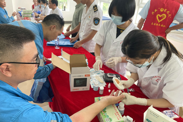 此次義診涵蓋血壓測量、血糖檢測、體重測量、心肺功能聽診等常規(guī)健康檢查,義診現(xiàn)場,前來咨詢和檢查的員工絡(luò)繹不絕,活動現(xiàn)場氣氛熱烈。醫(yī)護(hù)人員認(rèn)真地為每一位員工進(jìn)行細(xì)致的檢查和診斷。在量血壓、測血糖的服務(wù)臺前,醫(yī)護(hù)人員細(xì)致地為每位員工測量數(shù)據(jù),耐心講解血壓、血糖數(shù)值所代表的健康意義,針對偏高或偏低的情況給予個性化的飲食、運(yùn)動建議。內(nèi)科醫(yī)生耐心解答關(guān)于高血壓、頸椎病、季節(jié)性過敏等問題的咨詢;中醫(yī)醫(yī)生運(yùn)用中醫(yī)傳統(tǒng)診療方法,為員工們進(jìn)行把脈診療,并根據(jù)每個人的體質(zhì)開具個性化的養(yǎng)生建議。