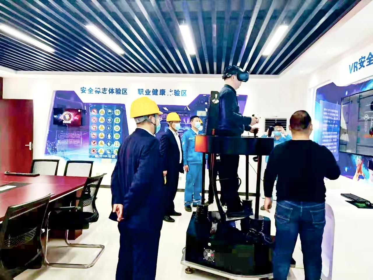 文化長廊隔壁,是充滿科技感的安全警示教育室,VR體驗、急救實操等設施一應俱全。剛入職的員工小林戴著眼鏡體驗粉塵爆炸場景:當虛擬空間中粉塵濃度飆升、警示燈爆閃的瞬間,座椅突然劇烈震動,仿佛身臨其境?!疤鸷沉?,比聽十次講座都管用?!闭卵坨R的他仍心有余悸,“以后每次進入粉塵區(qū)域,都會自覺檢查防塵口罩密封度?!毙聠T工需在此完成24小時以上的安全培訓方可上崗。