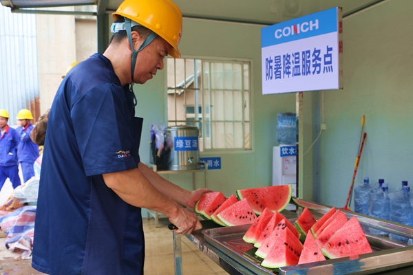 連日來,持續(xù)高溫天氣席卷廣西,多地氣溫突破35℃,給堅守在生產(chǎn)一線的員工帶來嚴(yán)峻“烤”驗。為切實做好防暑降溫工作,保障員工健康安全,確保夏季生產(chǎn)平穩(wěn)有序,7月8日,興安海螺公司領(lǐng)導(dǎo)班子帶領(lǐng)工會成員深入現(xiàn)場,開展“夏季送清涼”慰問活動,為奮戰(zhàn)在高溫崗位員工送去清涼物資與暖心關(guān)懷。